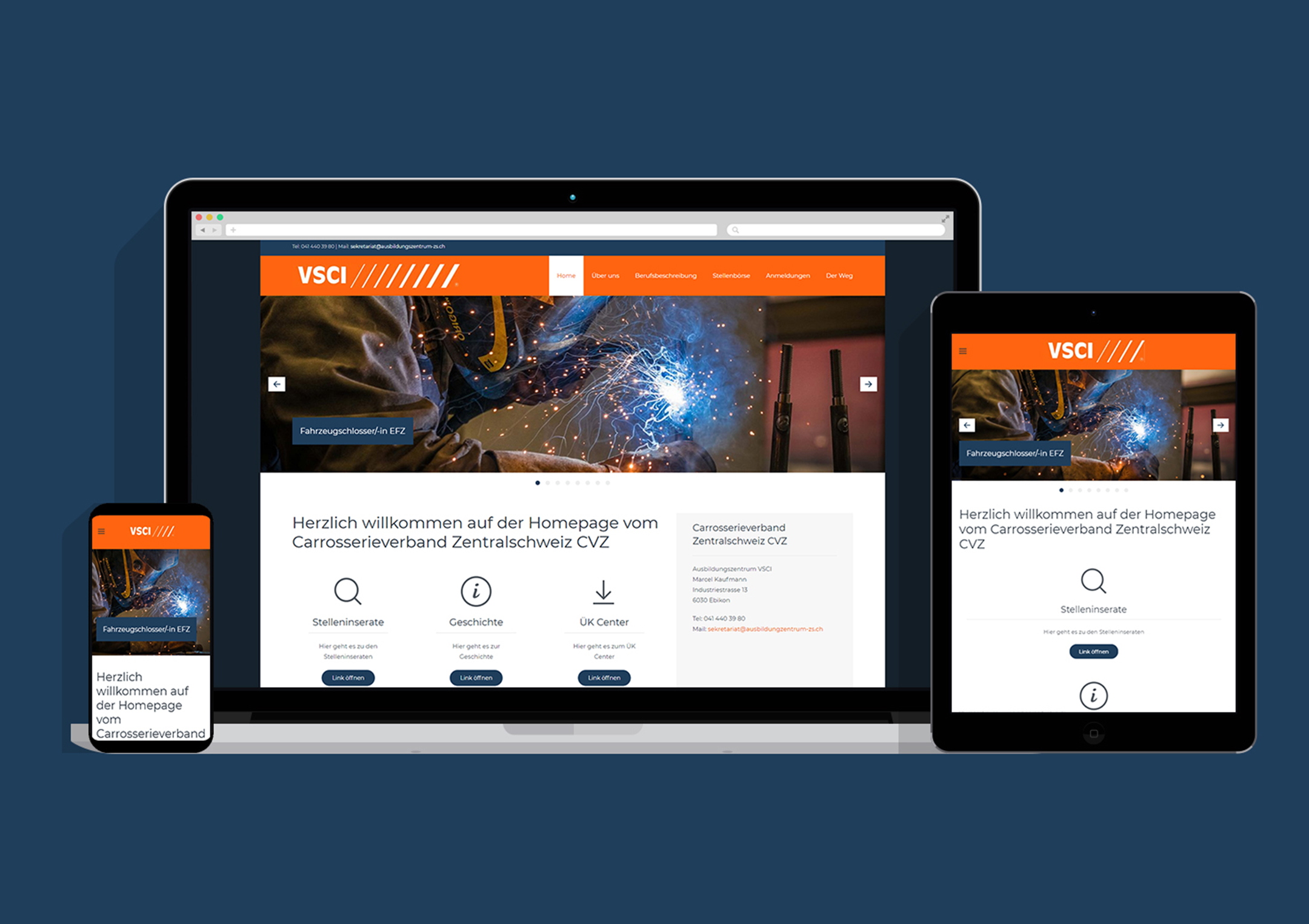Herzliche Gratulation an Tim Steffen. Er schloss heute pünktlich seine Abschlussarbeit ab. Er kreierte diese Homepage vom VSCI Ausbildungszentrum Zentralschweiz und integrierte eine Stellenbörse. Als ob das nicht genug wäre, hat er auch einen Film für den VSCI gedreht.